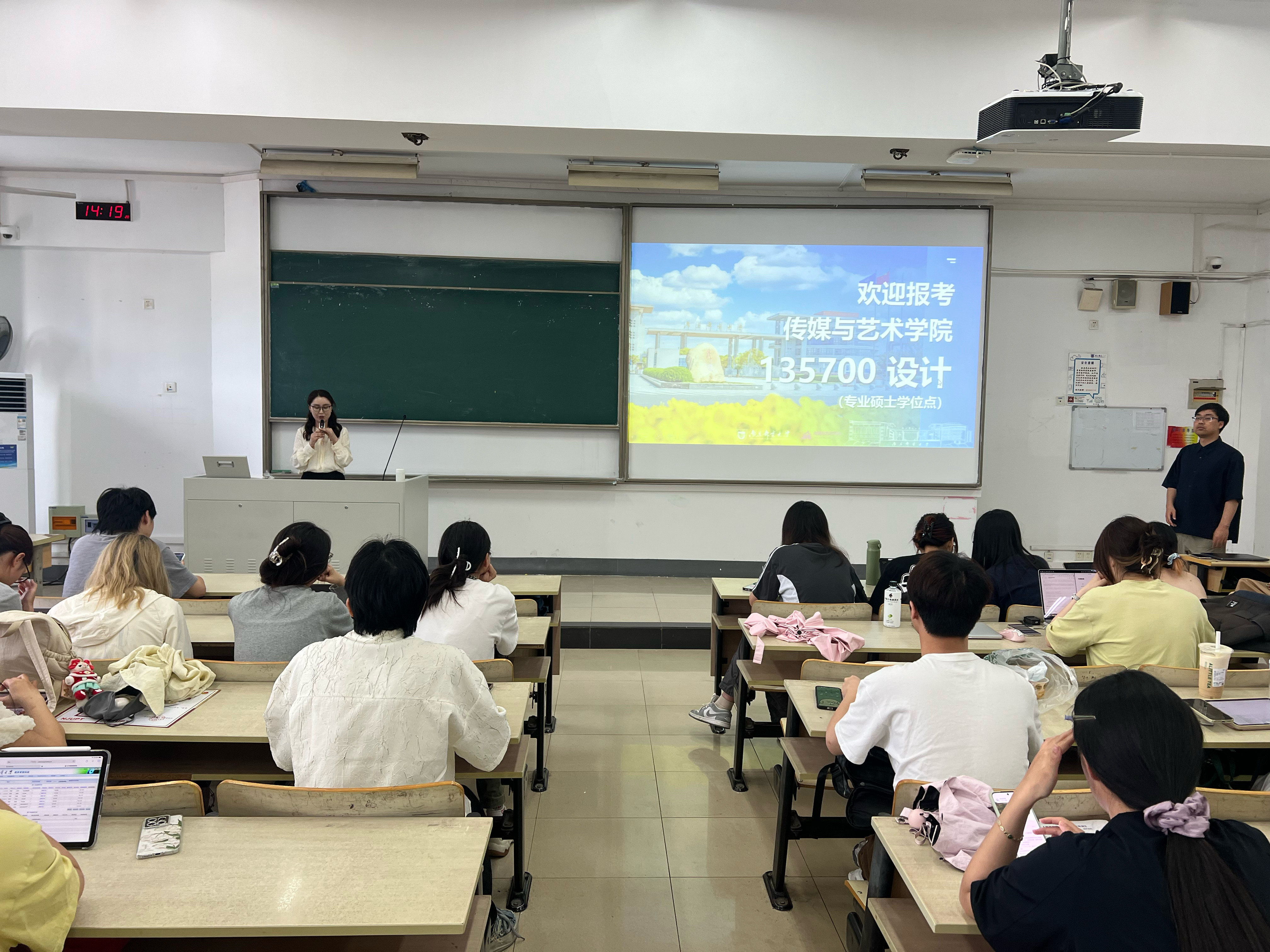 在升学路径介绍环节,来自本校新闻与传播、设计两个研究生专业的导师代表陆珊珊、程河清副教授,分别就各自专业的发展前景、招生情况、备考建议等进行了细致讲解,帮助同学们对目标专业有了更清晰的认知,也为下一阶段的复习准备提供了具体方向。
