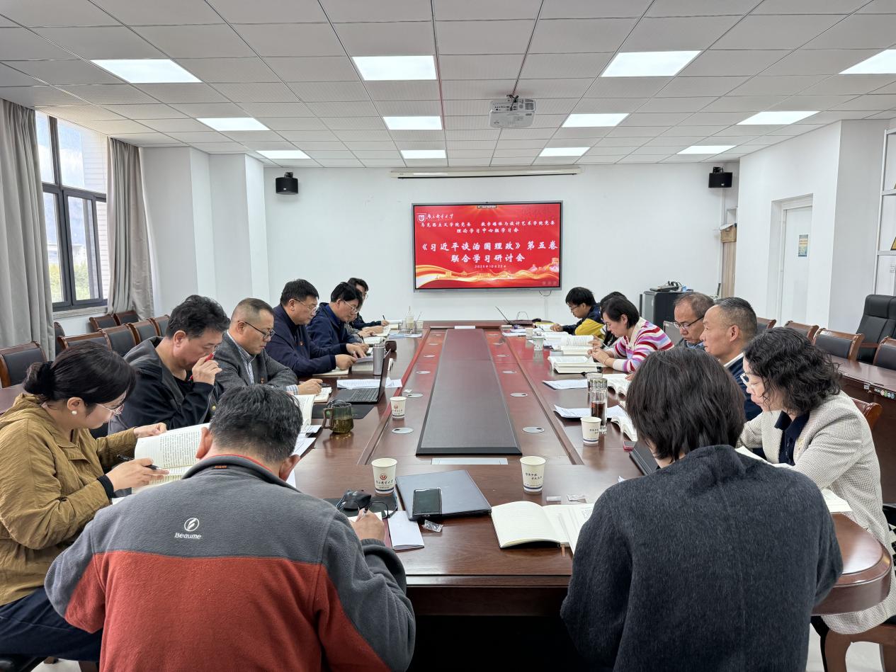 10月22日下午,数字媒体与设计艺术学院党委、马克思主义学院党委开展《习近平谈治国理政》第五卷联学活动,会议由两院党委书记、学习中心组组长董军、李大伟分阶段主持,两院中心组成员出席会议。