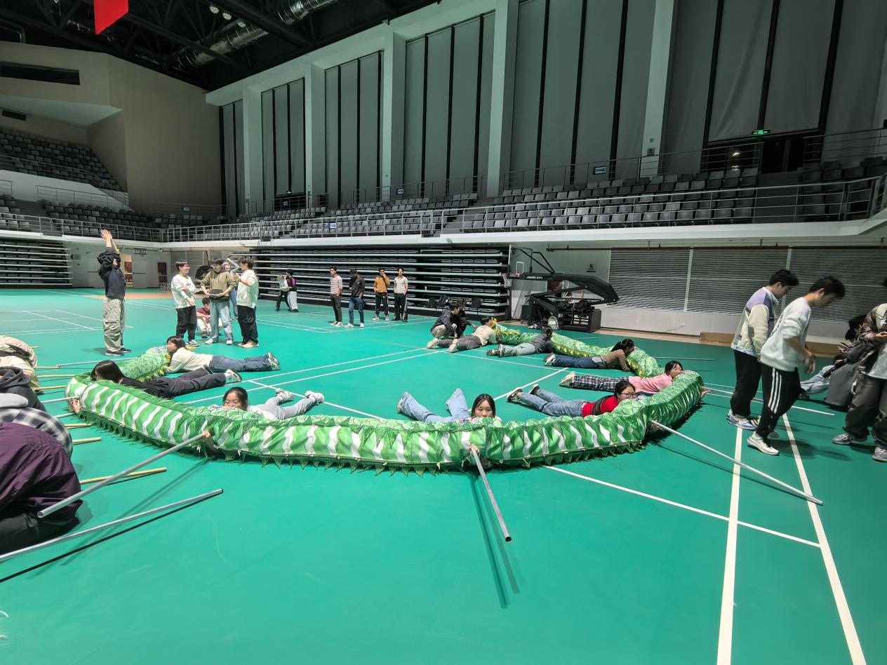 为确保活动高质量开展,学院党委成立了专项工作小组,进行了周密的筹备与排练。首先是主题凝练与脚本创作,工作组深入学习抗战历史,特别是与南京相关的悲壮史实;其次是艺术融合与形式创新,充分发挥数字媒体与设计艺术的专业优势,将龙狮的传统动作进行创造性转化,通过狮子的腾挪跳跃展现力量与觉醒,及“9.18”、“阻击阵地”、“血肉屏障”、“战旗队列”等特定造型,实现历史场景的视觉化再现。在历时数周的集中训练中,党员骨干发挥了先锋模范作用,带头刻苦训练,并主动承担起动作教学、排练组织与后勤保障工作,将筹备过程本身转化为一次锤炼党性、凝聚力量的实践锻炼。