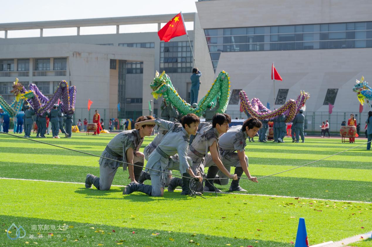 为纪念中国人民抗日战争暨世界反法西斯战争胜利80周年,深入学习贯彻习近平总书记关于“用好红色资源,赓续红色血脉”的重要指示精神,数字媒体与设计艺术学院党委精心策划并组织开展了“龙狮演绎抗战史诗·艺心筑牢信仰根基”沉浸式党日活动。活动以学院学生党员和入党积极分子为骨干,于10月24日南京邮电大学第五十六届田径运动会开幕式上,成功上演大型实景龙狮表演《正义必胜》,为全校师生呈现了一堂生动而深刻的“万人思政课”。