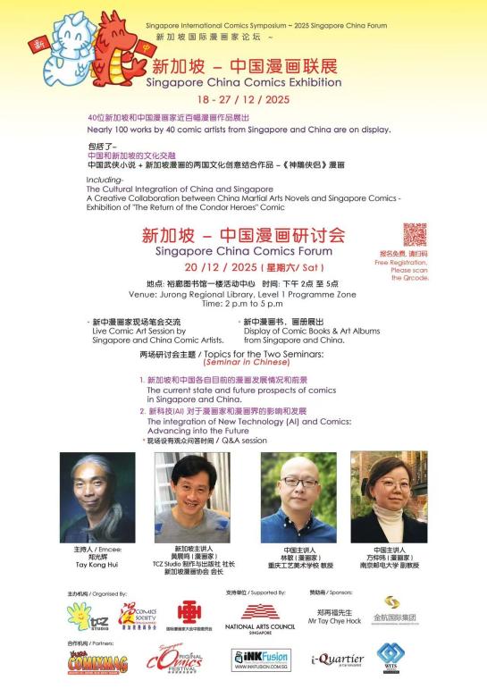 2025年12月20日新加坡-中国漫画联展暨国际漫画家论坛在新加坡裕廊图书馆圆满举办。南京邮电大学数字媒体与设计艺术学院副教授方仲玮受邀作为中国漫画家代表出席论坛,并发表主题演讲。
