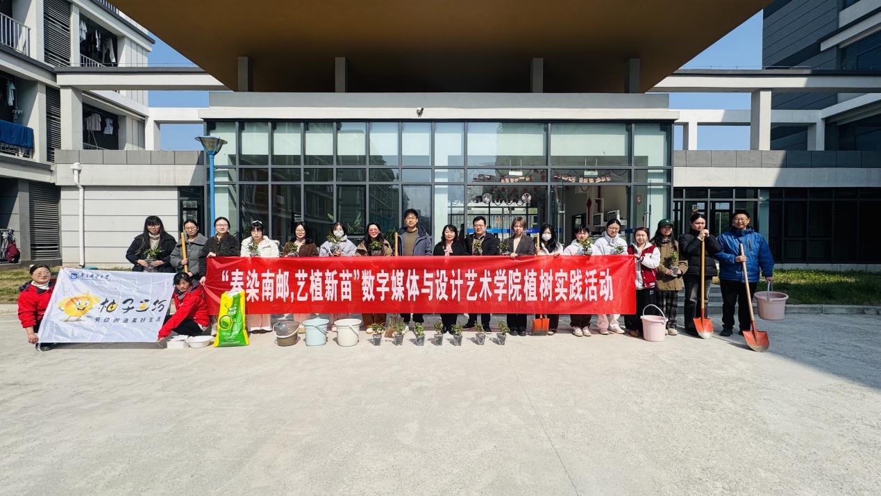 春风拂绿,万象更新。在第47个植树节来临之际,南京邮电大学数字媒体与设计艺术学院于樱苑侧畔开展“春染南邮,艺植新苗”植树实践活动。学院党委副书记、副院长刘远老师,分团委书记朱晓萌老师与学院研究生党支部、本科生党支部代表、宿管阿姨携手并肩,以亲手栽种蔷薇的方式为校园添绿增美,共赴一场与春天的约定。