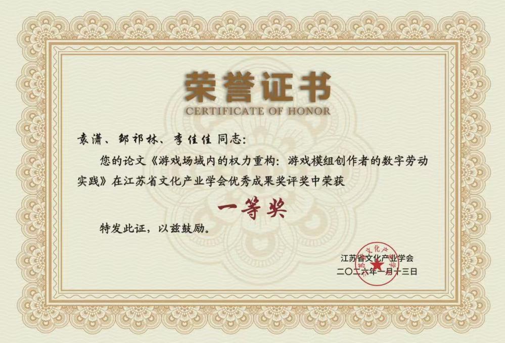 在研究生期间,他作为核心成员参与国家社科基金项目,并主持了1项江苏省研究生实践创新计划项目。通过扎实的民族志经历,他与导师合作完成多篇论文,其中,3篇论文已见刊和被录用于CSSCI期刊,1篇论文已见刊于中国人文社会科学核心期刊;同时,他参与写作的1篇论文已见刊于CSSCI期刊;此外,他与导师合作的学术著作将于今年出版。上述研究成果荣获2024年、2025年江苏省文化产业学会优秀成果奖一等奖、2024年江苏省新闻传播学学会年会推介论文、“惟新”论坛三等奖等奖项。