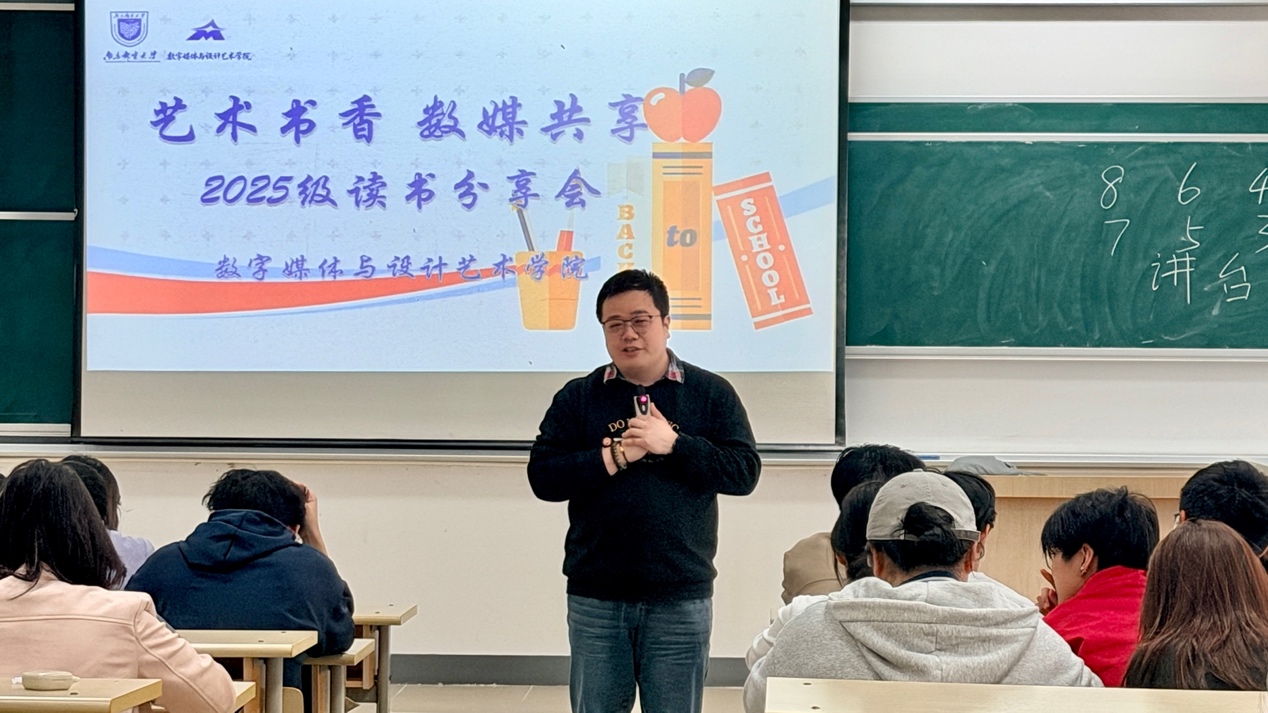 为迎接4月23日“世界读书日”,营造浓厚的校园阅读氛围,激发学生阅读兴趣,提升审美素养与思辨能力,数字媒体与设计艺术学院于4月20日15:30在教3-201教室举办“艺术书香,数媒共享”读书分享会活动。2025级学生积极参与本次活动,2025级辅导员姚继周主持活动。