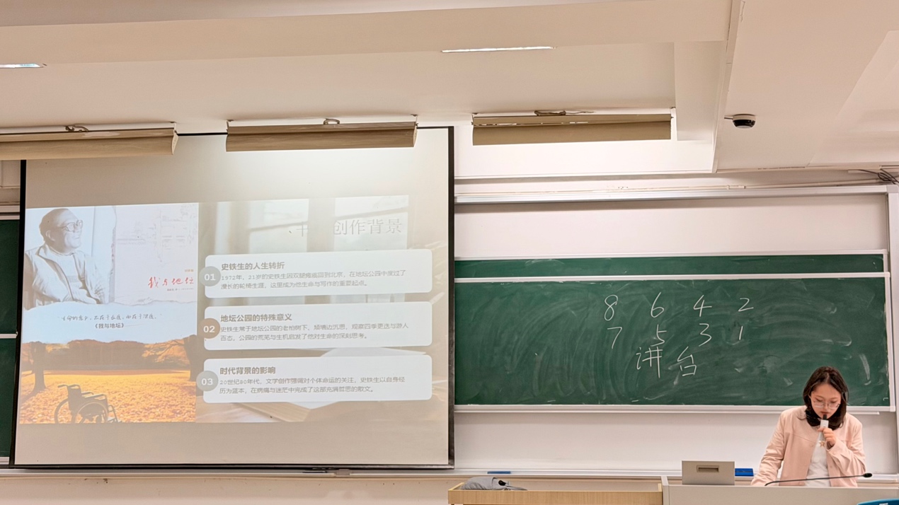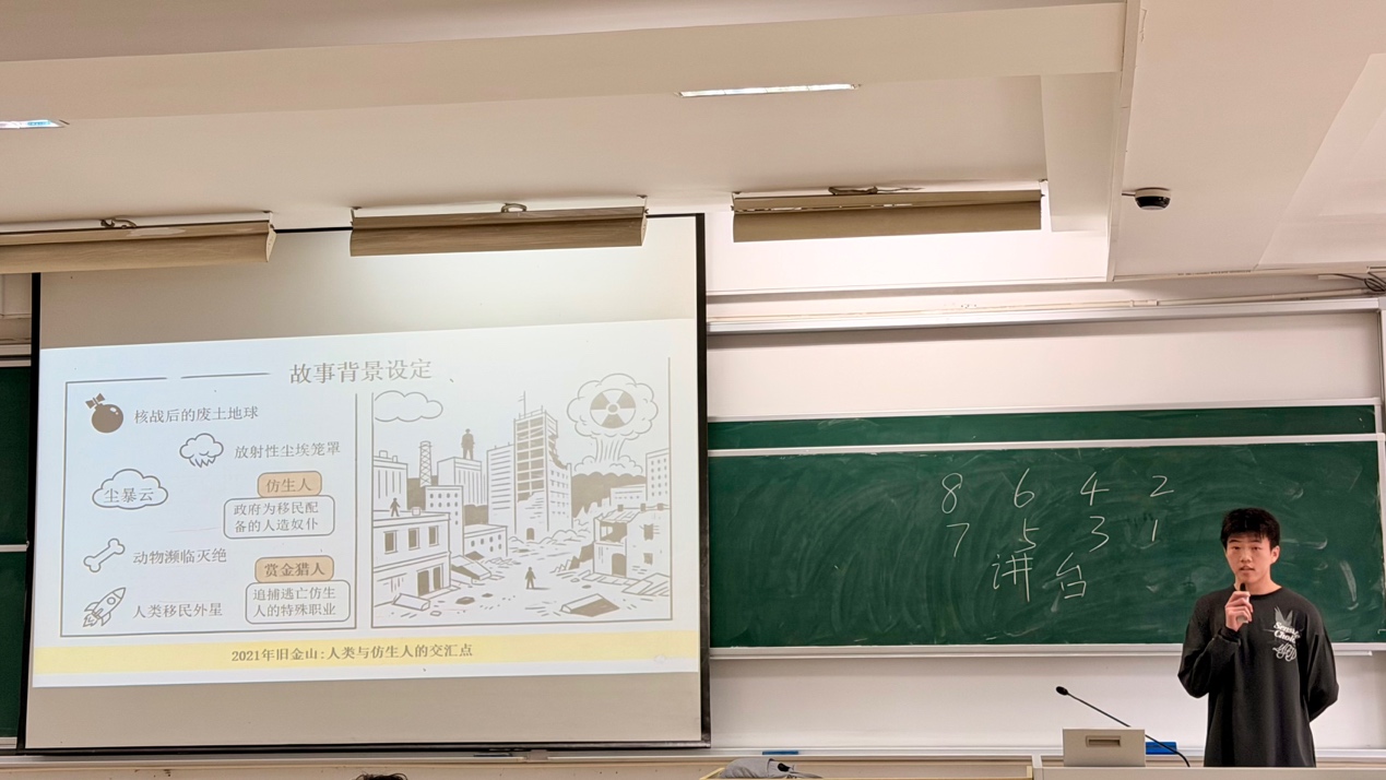 本次活动以“分享经典、交流思想”为主线,前期通过班级推荐遴选出8名代表进行现场书籍分享,每位同学围绕所选书籍进行6分钟PPT展示,从内容梗概、思想内涵及个人感悟等方面展开阐述,呈现出多样化的阅读视角与对书籍内容的深度思考。分享书目涵盖文学经典、哲学思考与人文关怀等多个领域,包括韦欣怡的《当下的力量》、郑焱宏的《仿生人会梦见电子羊吗》、张语嫣的《清单人生》、周铭昊的《鼠疫》、任桂圆的《我与地坛》、李雨暄的《万物有灵且美》、邬晗慧的《你当像鸟飞往你的山》以及刘一诺的《恶意》。
