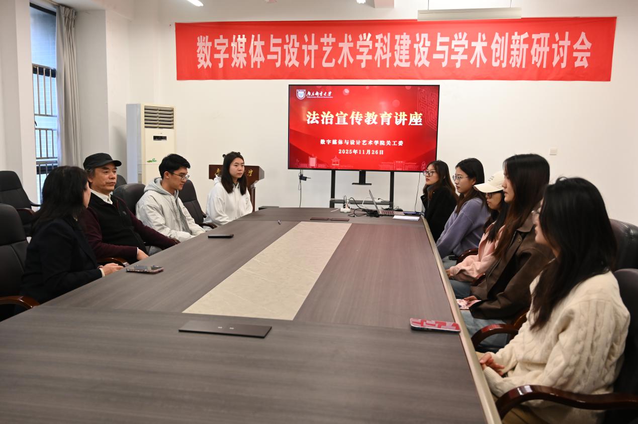 为深入学习贯彻法治思想,切实增强大学生法治观念和安全防范意识,营造学法、懂法、守法、用法的良好校园氛围,11月26日,数字媒体与设计艺术学院关工委在文科楼120会议室开展“播法治之种,践青春之行”大学生法治宣传教育专题讲座。本次讲座特邀学院关工委副主任王平教授,学院党委副书记、副院长刘远,组织员沈彤,研究生8名代表参加了本次活动。